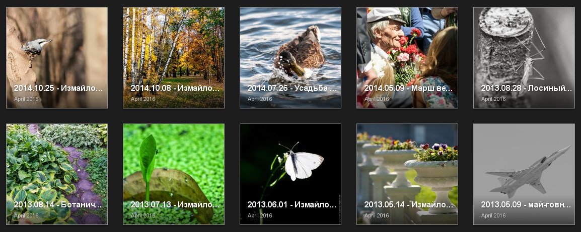 Новый интерфейс гуглофоток — это какой-то лютый мрак, как с точки зрения дизайна, так и с точки зрения функционала: эмбедить альбомы нельзя, при удалении альбома фотки из него тупо вытряхиваются в общую кучу (!), сами альбомы создаются стихийно по каждому чиху и отсортировать эту всю кашу быстро становится невозможно. Так что в связи с ожидающимся закрытием пикасы, которая оставалась единственным вменяемым интерфейсом к этому бардаку, перетащил почти все свои старые фотки к себе на хостинг. С эмбедом, правда, не складывается (по крайней мере пока), но зато сама галерея не засрана и содержит строго то, что мне нужно.